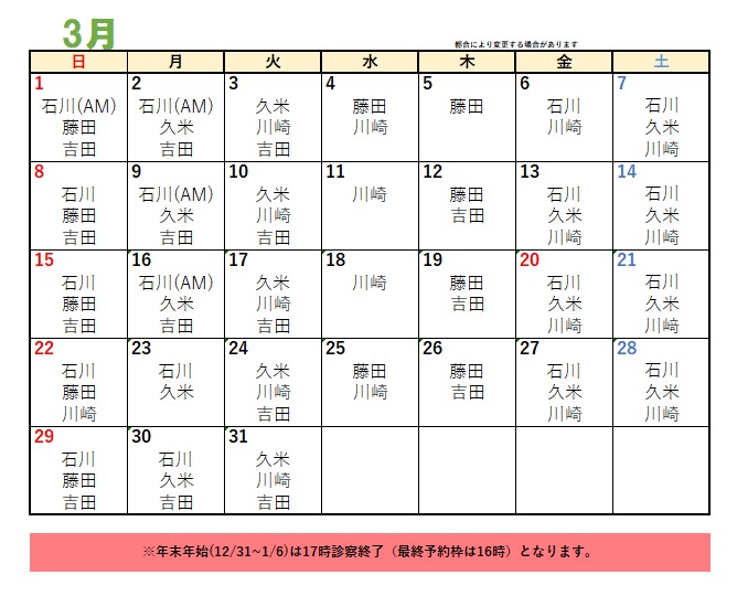 受付時間:9:00~13:00 15:00~20:00(年中無休)